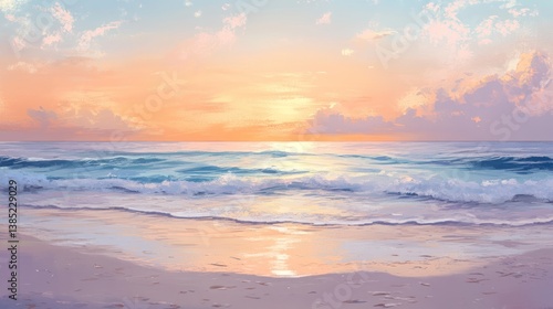 Pastel beach sunset, tranquil ocean, soft light. Possible use Background, wallpaper, social media