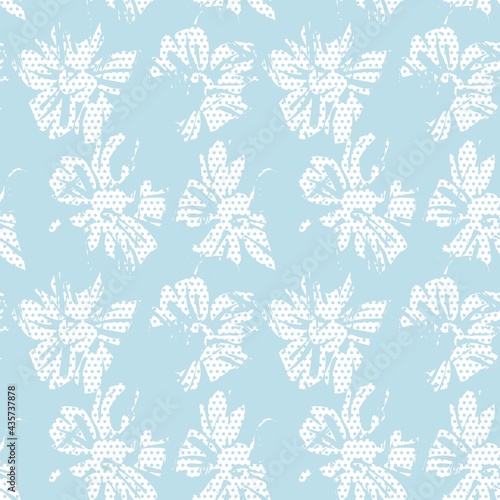 Pastel Botanical Tropical Floral Seamless Pattern with dotted Background