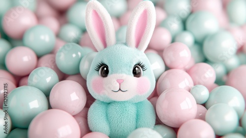 Pastel Bunny Amidst Soft Pink and Mint Balls