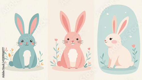 pastel bunny designs greeting cards feature modern art minimalistic styles spring