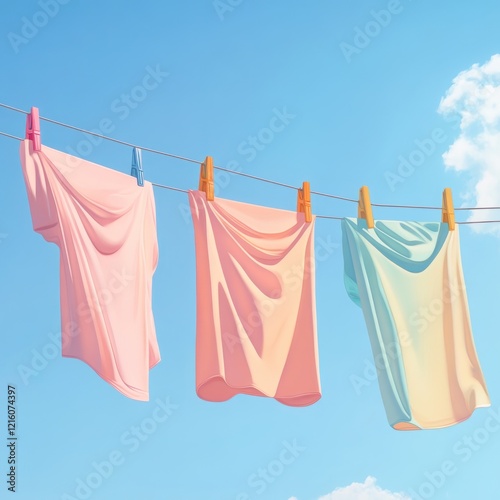 Pastel clothesline laundry drying sunny day
