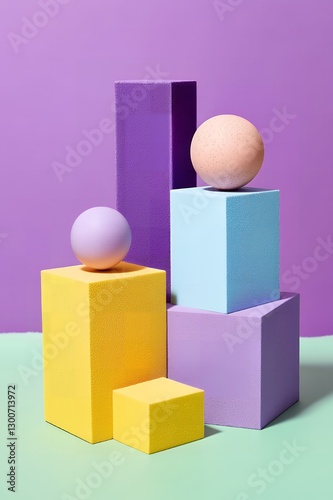 Pastel Colored Cubes and Spheres Abstract Still Life Product Display
