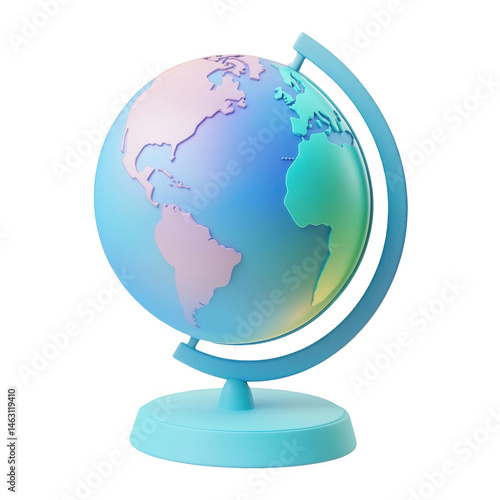 Pastel colored globe model world map geography education study 3d blue on transparent background