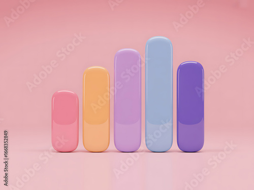 Pastel colored lip balms arranged in ascending height order