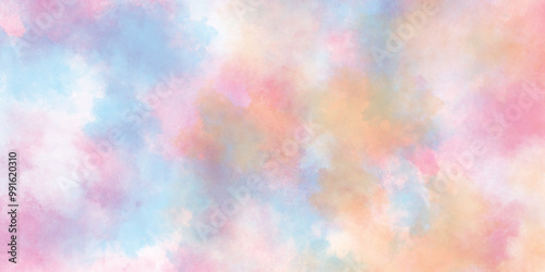 Pastel colors wet effect hand drawn soft watercolor background, Abstract cloudy gradient background with multicolor cloudy stains, multicolor clouds texture watercolor picture painting illustration.