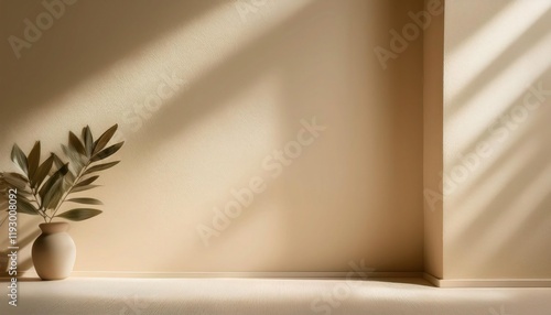 Pastel Cream Wall Background with Soft Natural Light Shadows