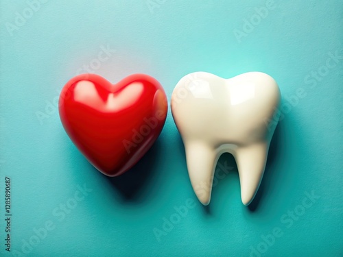 Pastel dental art: heart and teeth, aerial view.