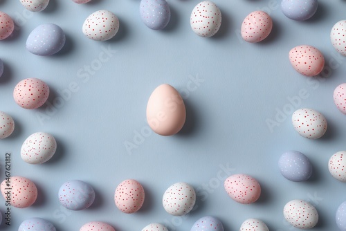 Pastel Dotted Eggs Arranged on a Soft Blue Background Create a Vibrant Display for Festive Celebrations or Springtime Decor Generative AI