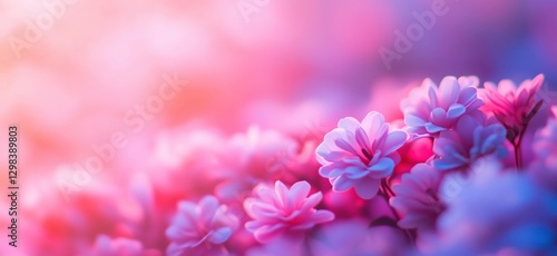 Pastel Dream: Delicate pink and purple flowers bloom in soft, diffused light, creating a dreamy and romantic atmosphere.