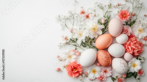 Pastel Easter eggs nestled amongst delicate blossoms, a spring celebration!