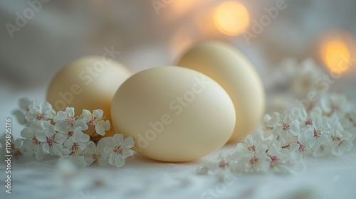 Pastel Easter Eggs Nestled in Delicate Spring Blossoms
