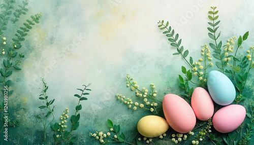 Pastel Easter Eggs on Greenery Background for Spring Blog Headers, Social Media Posts & DIY Craft Projects
