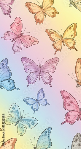 Pastel Flutter: A Rainbow of Wings AI Generated