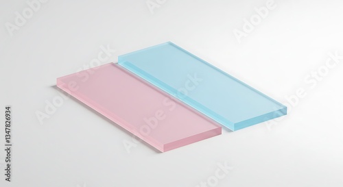 Pastel Glass Blocks Minimalist Display Pink and Blue Rectangles on White Surface Isometric Still Life