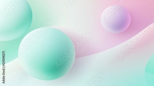 Pastel Gradient Spheres, Soft Background with Pink and Mint Tones, Abstract 3D Shapes, Minimalist Design