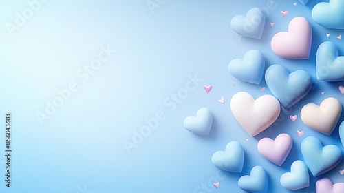 Pastel Heart Shapes on Light Blue Background for Valentine's Day or Romantic Celebrations