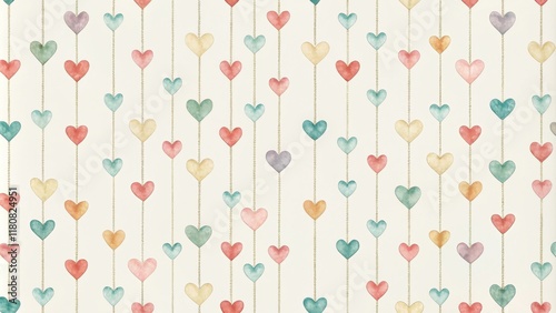 Pastel Hearts Hanging on Strings Romantic Pattern Background