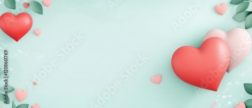 Pastel Hearts on Mint Background - Valentine's Day Design