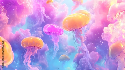 Pastel Jellyfish Swim in a Dreamlike Ocean