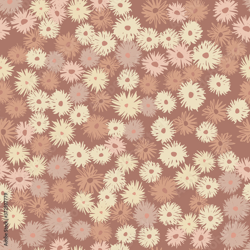 Pastel maroon palette seamless chrysanthemum pattern. Stylized botanic print.