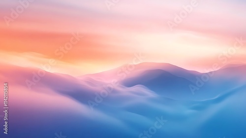 Pastel Mountainscape Under a Soft Sunrise Sky