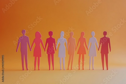 Pastel Paper Cutout People Holding Hands Together