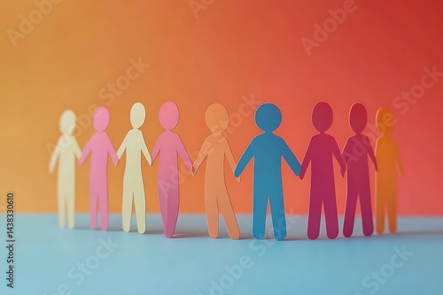 Pastel Paper People Holding Hands Unity Team
