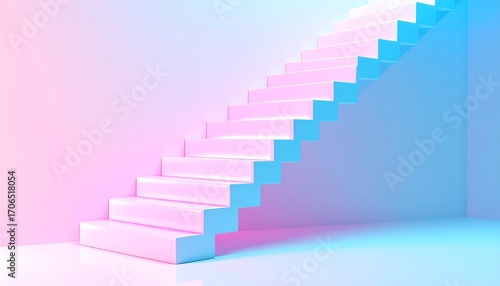Pastel pink and blue stairs in a minimalist room