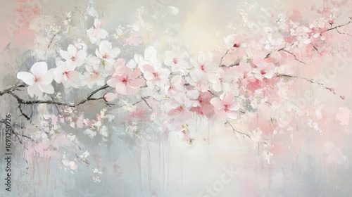 Pastel Pink and White Blossom Branches.