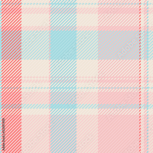 Pastel pink, blue, and coral plaid pattern. Perfect for textile designs, websites, branding, and scrapbooking. Subtle yet cheerful, this soft color palette evokes feelings of serenity and warmth.