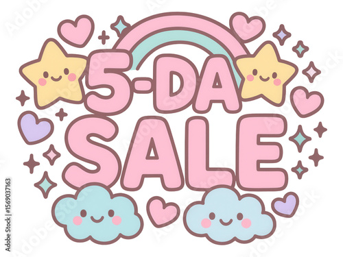Pastel pink bubble sticker with 5-DAY SALE in cute kawaii style, charming retail promotion on transparent background.