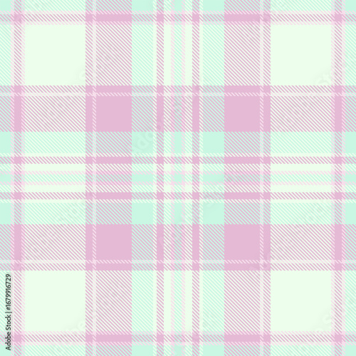 Pastel plaid pattern. Gentle hues of pink and mint create a soft, classic textile design. Use for backgrounds, apparel, or a touch of cozy warmth.
