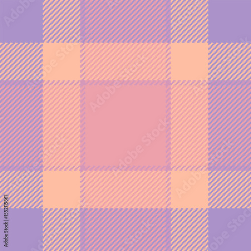 Pastel plaid seamless pattern. Soft, checkered textile design in pink, peach, and purple. Ideal for backgrounds, apparel, or creative projects.