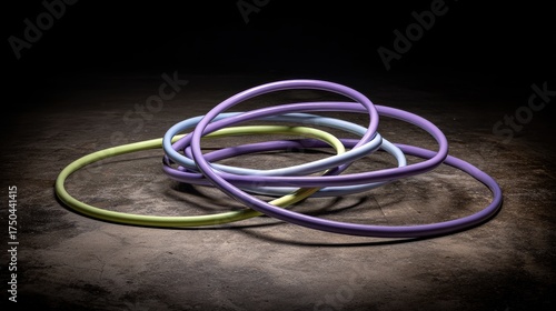Pastel Plastic Gymnastic Loops Intertwined on Mottled Backdrop Rings Game Childhood Exercise Flexibility