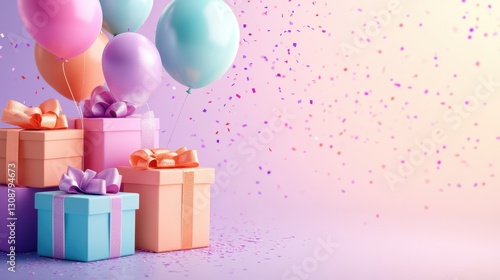 Pastel Presents and Balloons Celebration Festive Birthday Party Surprise Gift Boxes