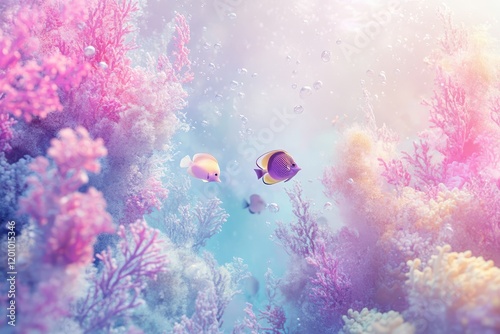 Pastel Reef Scene Featuring Two Tropical Fish