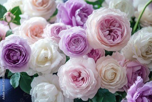 Pastel roses bouquet, close-up, soft lighting, floral arrangement on dark surface