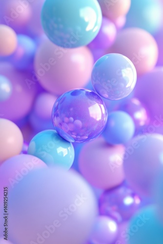Pastel Spheres in Dreamy Arrangement Soft Light and Depth of Field Creates a Serene and Playful Visual Experience
