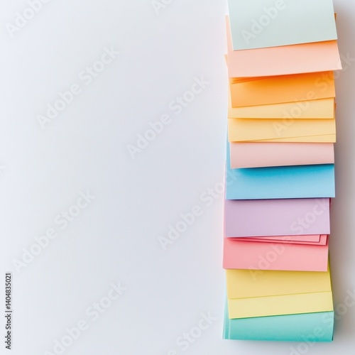 Pastel Sticky Notes: Organized Stack on White Background for Creative Projects and Office Concepts