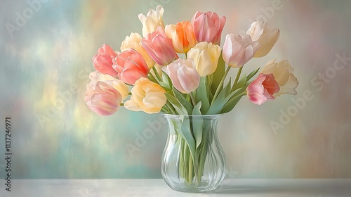 Pastel Tulips in a Glass Vase Arrangement