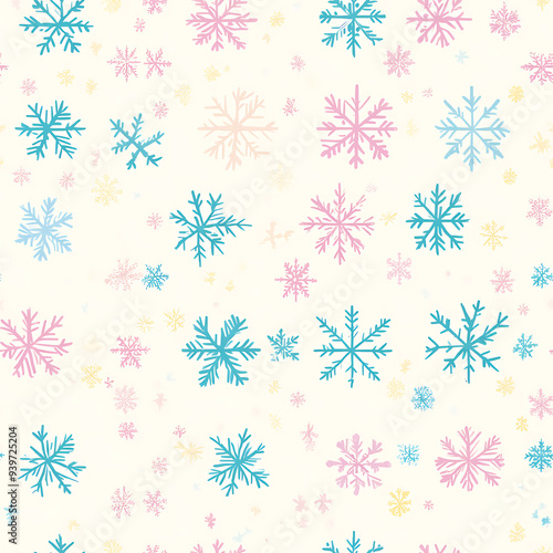 Pastel watercolor snowflake background. Soft delicate design for serene winter theme. Ideal for holiday decor and subtle seasonal art.