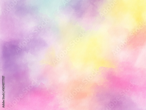 Pastel watercolor wash background in pink purple yellow and blue soft tones abstract art style for graphic design projects