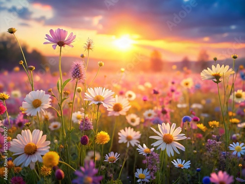 Pastel Wildflower Meadow at Sunset - Soft Summer Evening 3D Render