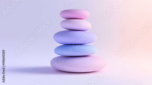 Pastel Zen Balance: A Serene Stack of Stones in Dreamy Lavender Hues