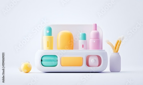 Pastel-colored baby care kit in a portable container.