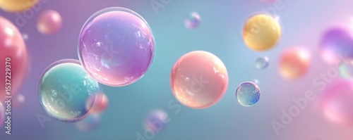 Pastel-colored floating bubbles on a softly blurred dreamy background