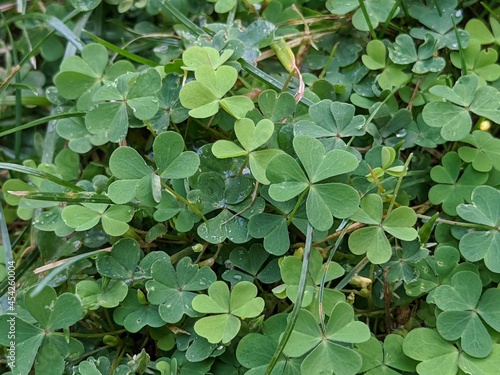 Patch of green clovers on a springtime day