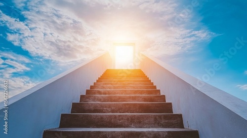 Pathway to Opportunity - Staircase Leading to Bright Doorway Symbolizing Success and Growth