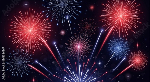 Patriotic fireworks display art print, red, white, blue, festive celebration, home decor