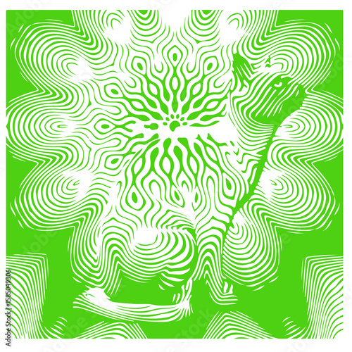 Patrón Hipnótico Cuadrado de Rayas Onduladas Verdes sobre Fondo Transparente
